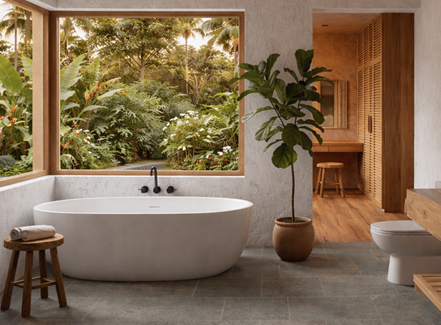 Floor-to-ceiling glass that erases the boundary between your living room and the lush Auroville landscape.